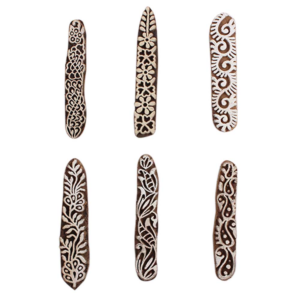 Set of 6 Piece New Mix Wooden Printing Block. Ideal for Using on Fabric, Paper, Canvas, etc. These Blocks can be use to Print with Oil Colors, Fabric Colors, Water Colors, Acrylic Colors and Vegetable Colors.