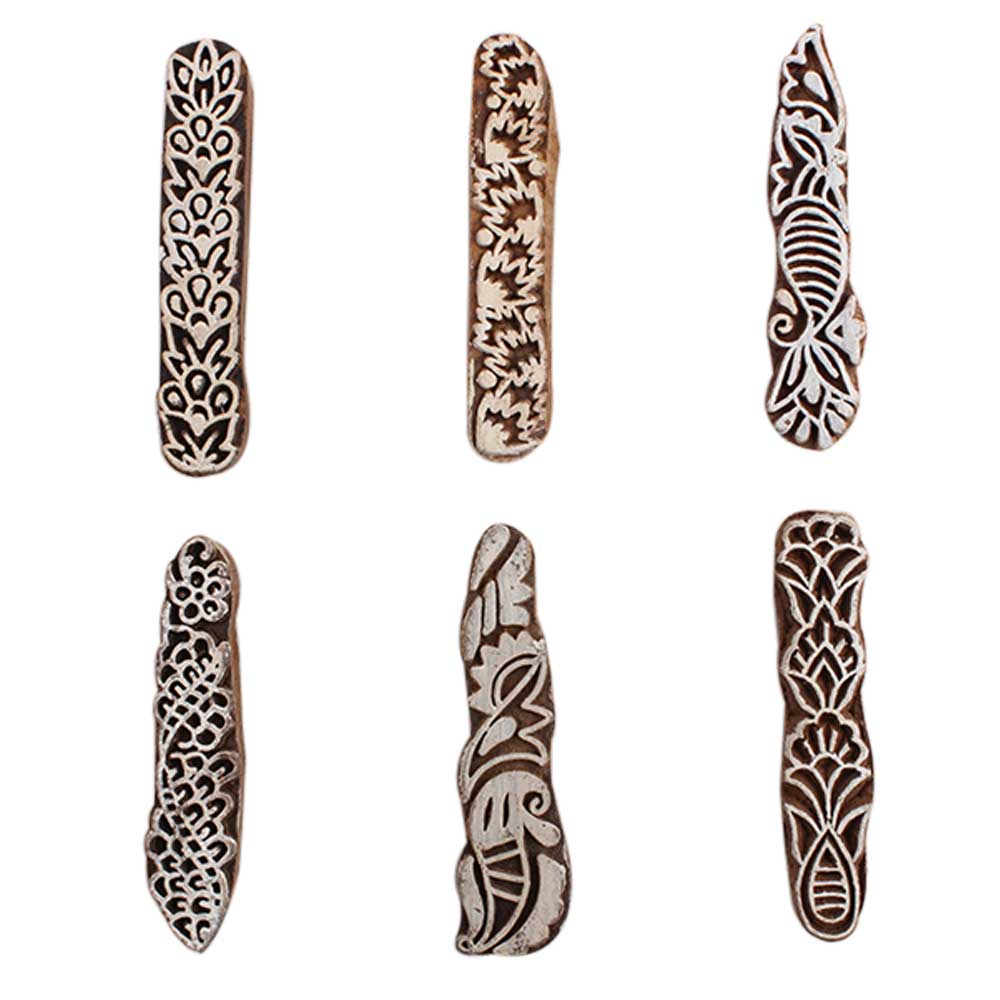 Set of 6 Piece New Mix Wooden Printing Block. Ideal for Using on Fabric, Paper, Canvas, etc. These Blocks can be use to Print with Oil Colors, Fabric Colors, Water Colors, Acrylic Colors and Vegetable Colors.