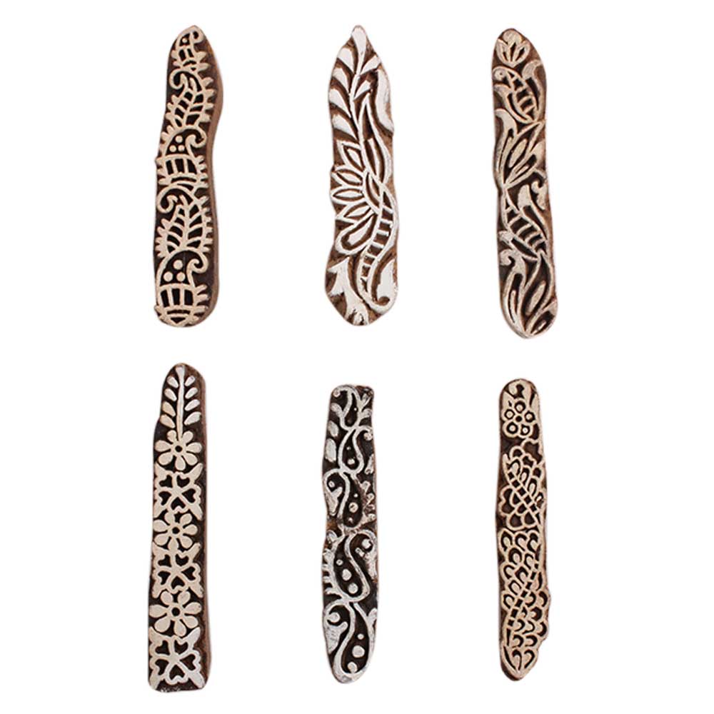 Set of 6 Piece New Mix Wooden Printing Block. Ideal for Using on Fabric, Paper, Canvas, etc. These Blocks can be use to Print with Oil Colors, Fabric Colors, Water Colors, Acrylic Colors and Vegetable Colors.