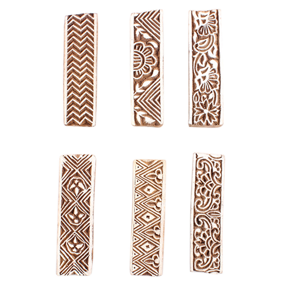 Set of 6 Piece New Mix Wooden Printing Block. Ideal for Using on Fabric, Paper, Canvas, etc. These Blocks can be use to Print with Oil Colors, Fabric Colors, Water Colors, Acrylic Colors and Vegetable Colors.
