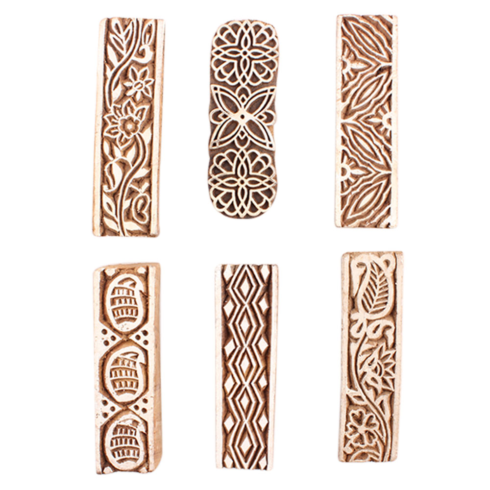 Set of 6 Piece New Mix Wooden Printing Block. Ideal for Using on Fabric, Paper, Canvas, etc. These Blocks can be use to Print with Oil Colors, Fabric Colors, Water Colors, Acrylic Colors and Vegetable Colors.