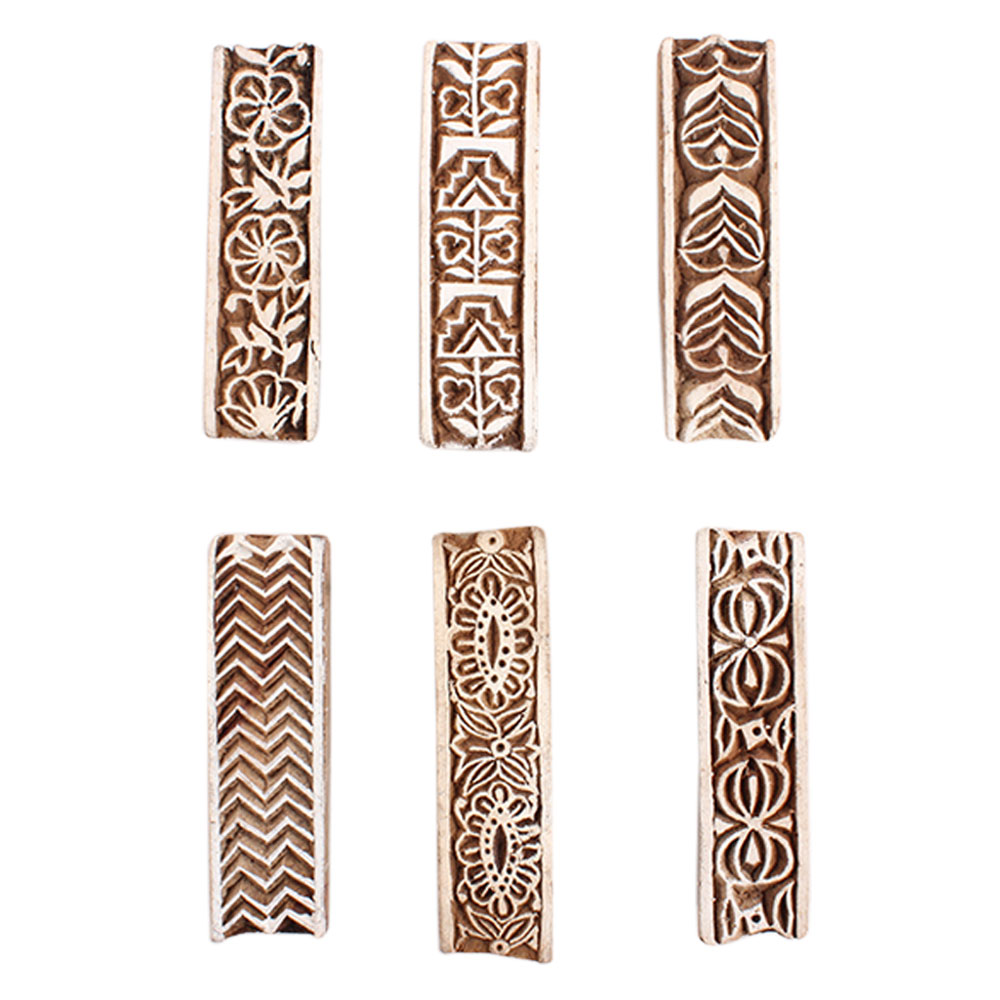 Set of 6 Piece New Mix Wooden Printing Block. Ideal for Using on Fabric, Paper, Canvas, etc. These Blocks can be use to Print with Oil Colors, Fabric Colors, Water Colors, Acrylic Colors and Vegetable Colors.