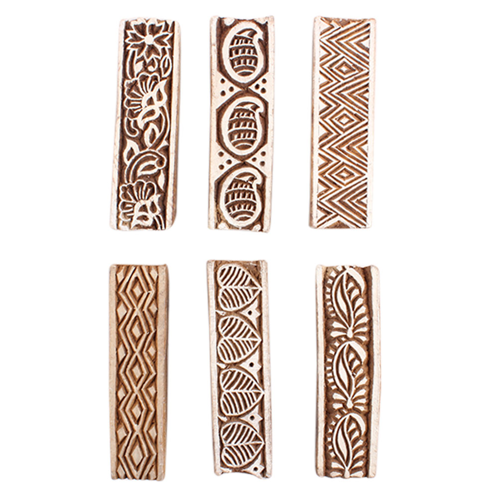 Set of 6 Piece New Mix Wooden Printing Block. Ideal for Using on Fabric, Paper, Canvas, etc. These Blocks can be use to Print with Oil Colors, Fabric Colors, Water Colors, Acrylic Colors and Vegetable Colors.
