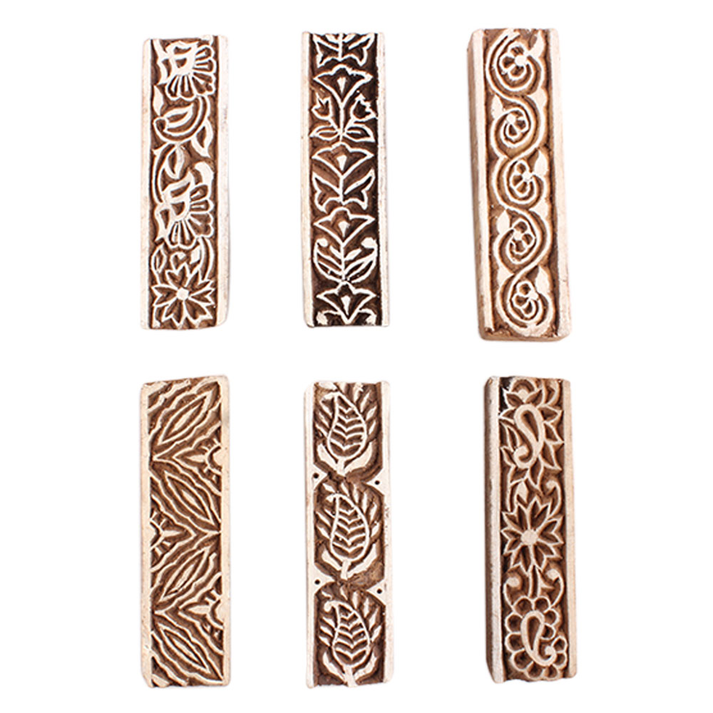 Set of 6 Piece New Mix Wooden Printing Block. Ideal for Using on Fabric, Paper, Canvas, etc. These Blocks can be use to Print with Oil Colors, Fabric Colors, Water Colors, Acrylic Colors and Vegetable Colors.
