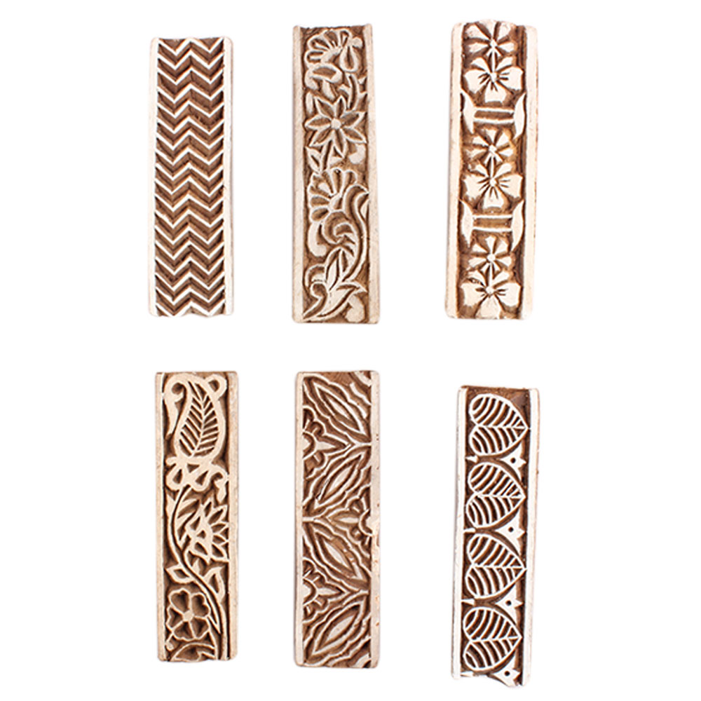 Set of 6 Piece New Mix Wooden Printing Block. Ideal for Using on Fabric, Paper, Canvas, etc. These Blocks can be use to Print with Oil Colors, Fabric Colors, Water Colors, Acrylic Colors and Vegetable Colors.