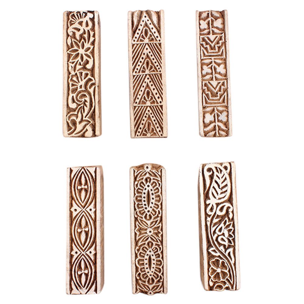 Set of 6 Piece New Mix Wooden Printing Block. Ideal for Using on Fabric, Paper, Canvas, etc. These Blocks can be use to Print with Oil Colors, Fabric Colors, Water Colors, Acrylic Colors and Vegetable Colors.