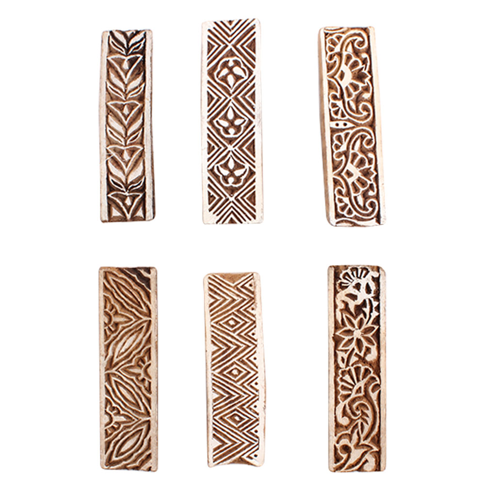 Set of 6 Piece New Mix Wooden Printing Block. Ideal for Using on Fabric, Paper, Canvas, etc. These Blocks can be use to Print with Oil Colors, Fabric Colors, Water Colors, Acrylic Colors and Vegetable Colors.