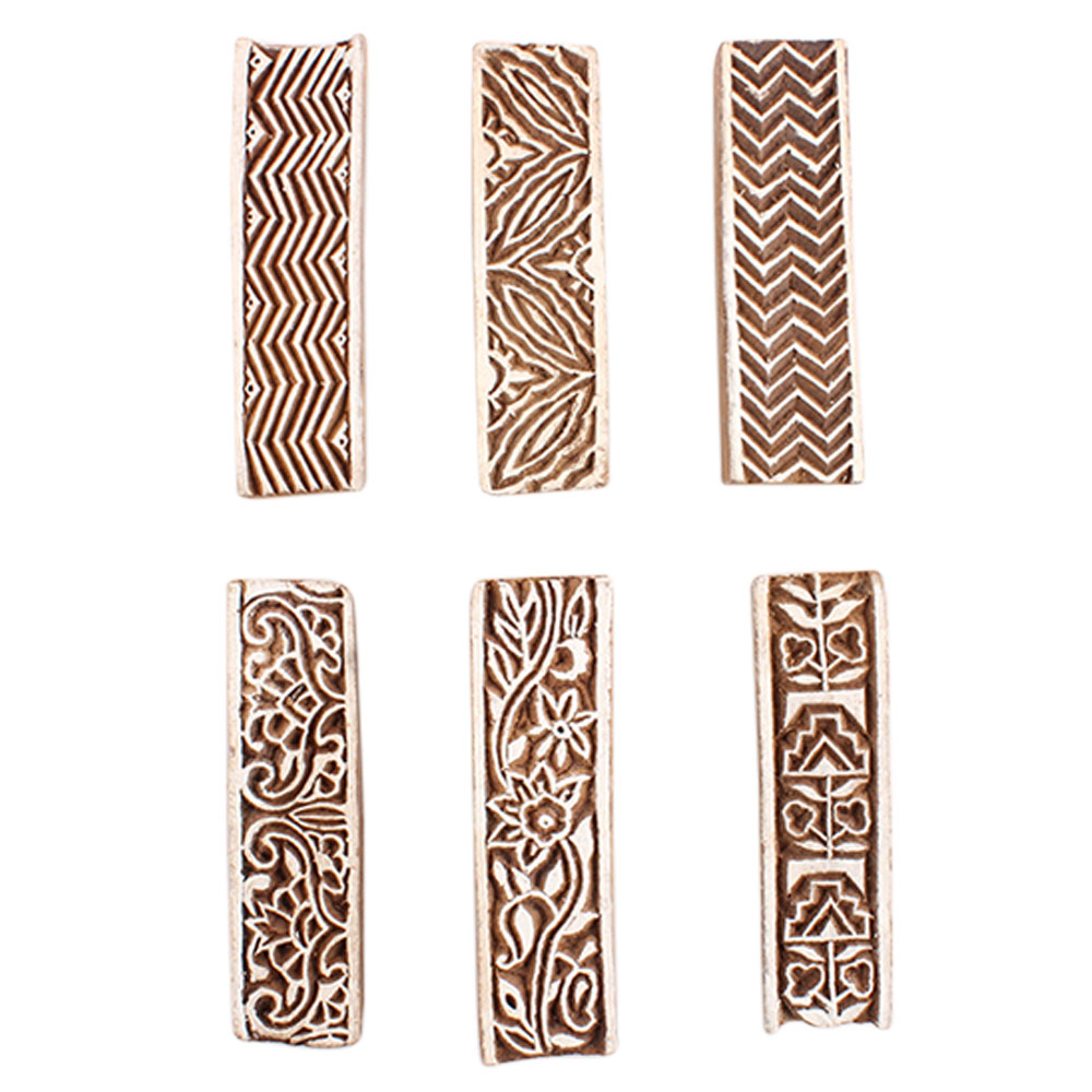 Set of 6 Piece New Mix Wooden Printing Block. Ideal for Using on Fabric, Paper, Canvas, etc. These Blocks can be use to Print with Oil Colors, Fabric Colors, Water Colors, Acrylic Colors and Vegetable Colors.