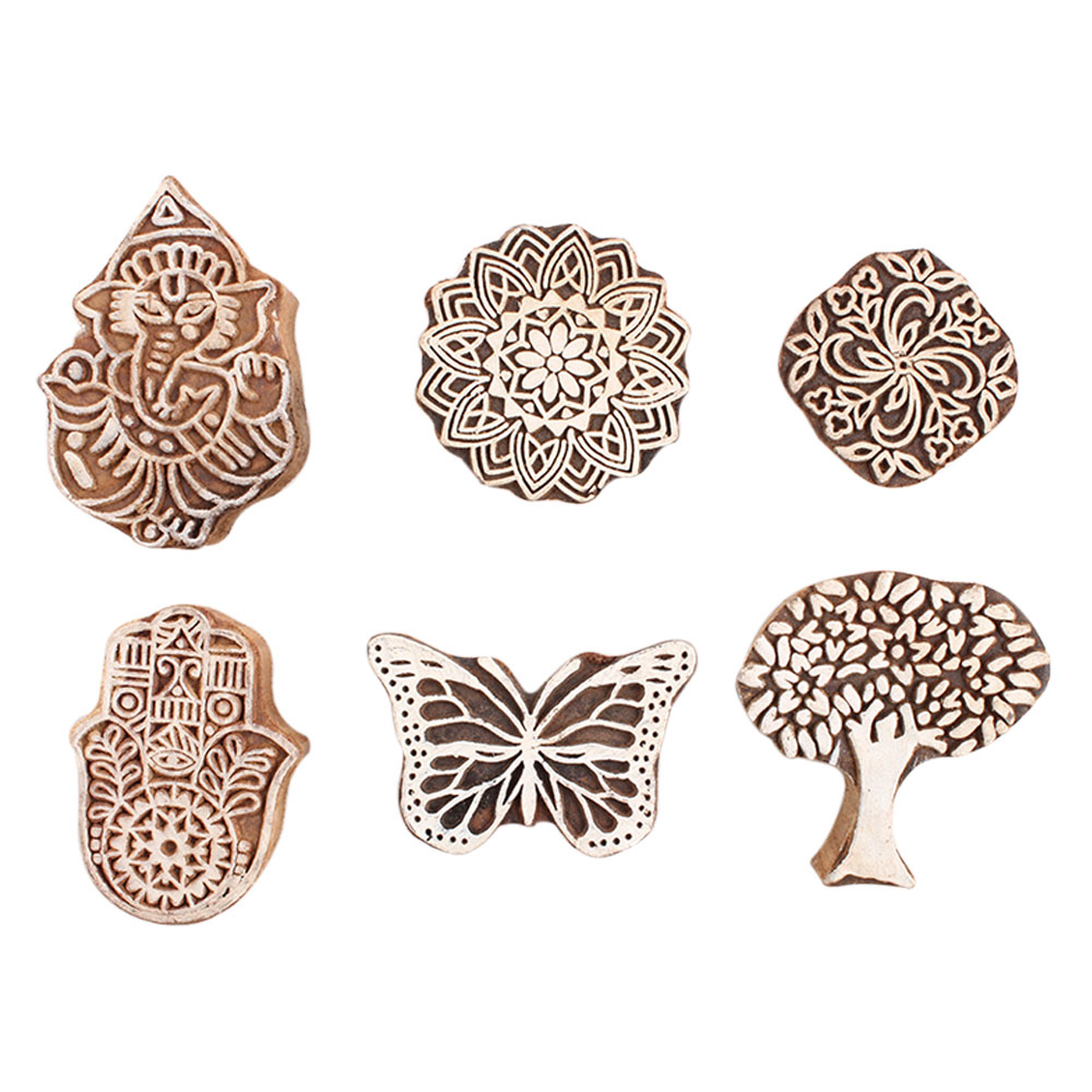 Set of 6 Piece New Mix Wooden Printing Block. Ideal for Using on Fabric, Paper, Canvas, etc. These Blocks can be use to Print with Oil Colors, Fabric Colors, Water Colors, Acrylic Colors and Vegetable Colors.