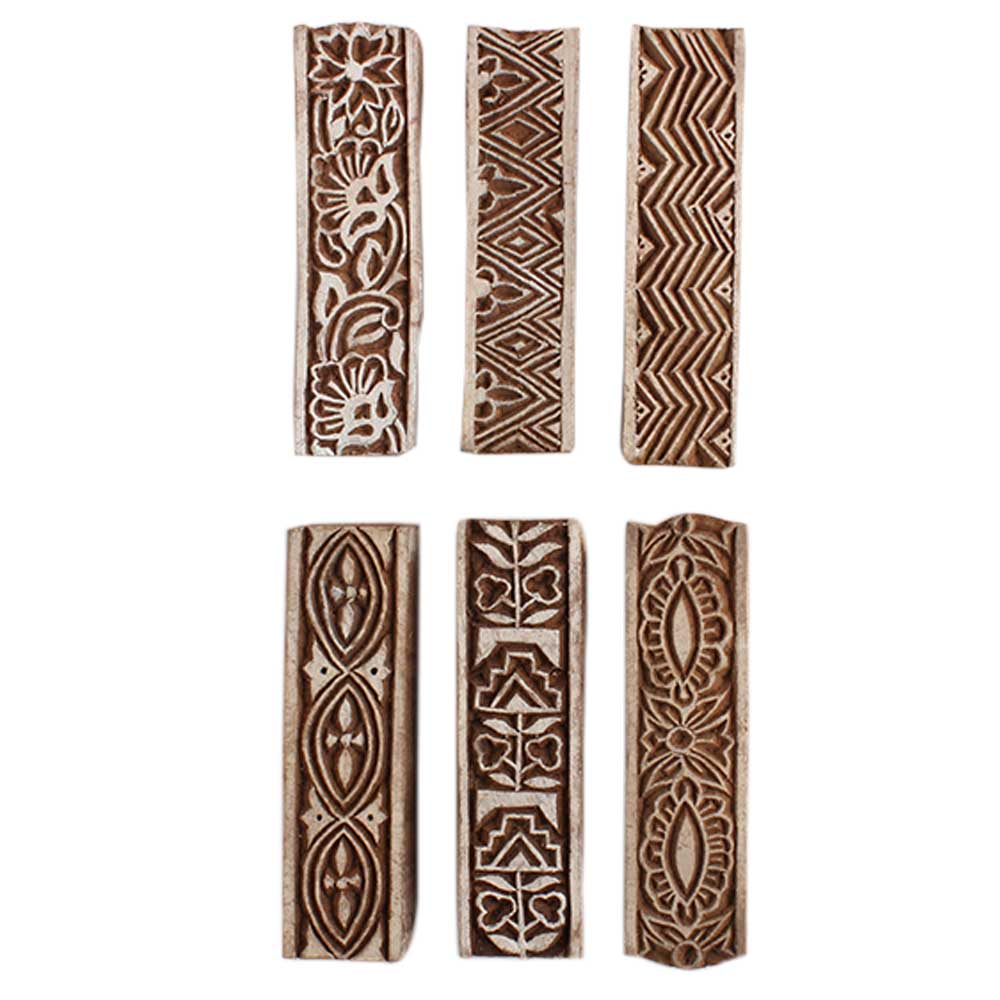 Set of 6 Piece New Mix Wooden Printing Block. Ideal for Using on Fabric, Paper, Canvas, etc. These Blocks can be use to Print with Oil Colors, Fabric Colors, Water Colors, Acrylic Colors and Vegetable Colors.