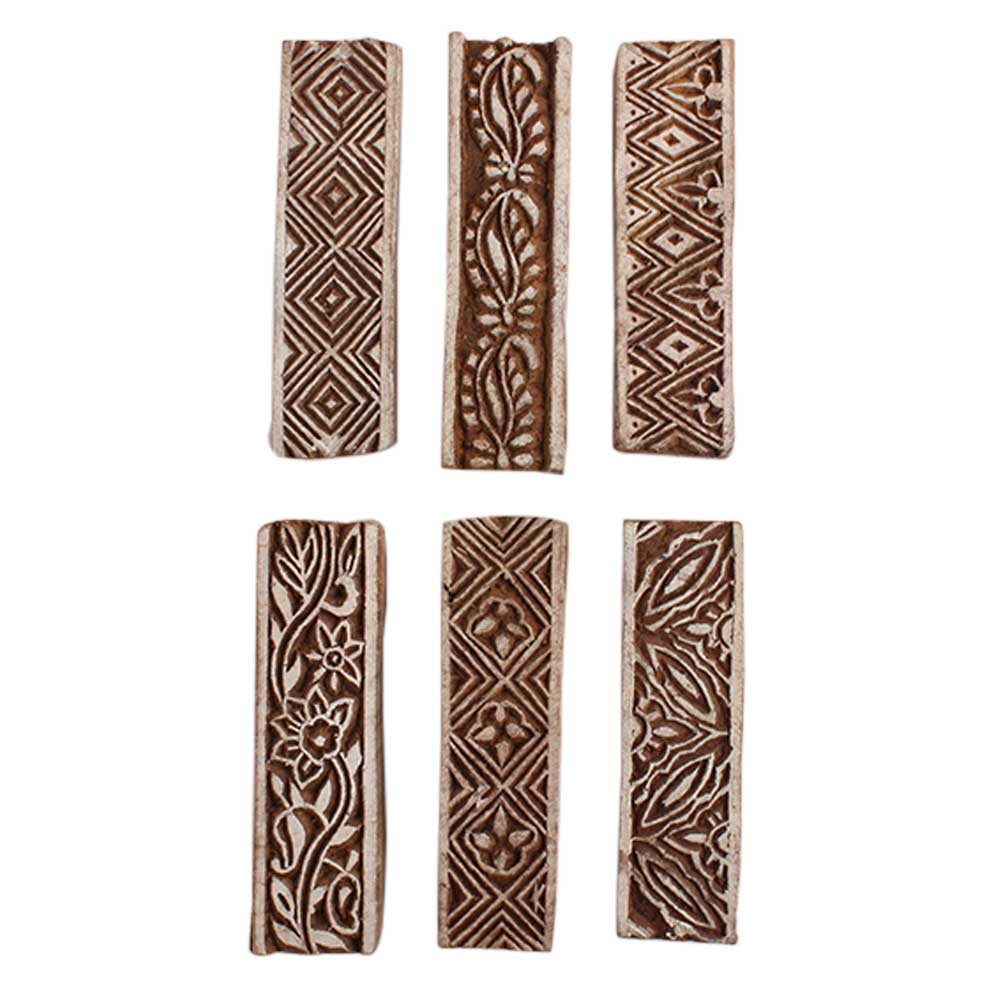 Set of 6 Piece New Mix Wooden Printing Block. Ideal for Using on Fabric, Paper, Canvas, etc. These Blocks can be use to Print with Oil Colors, Fabric Colors, Water Colors, Acrylic Colors and Vegetable Colors.