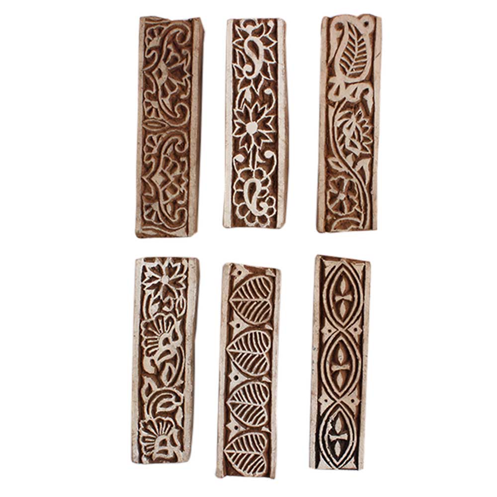 Set of 6 Piece New Mix Wooden Printing Block. Ideal for Using on Fabric, Paper, Canvas, etc. These Blocks can be use to Print with Oil Colors, Fabric Colors, Water Colors, Acrylic Colors and Vegetable Colors.