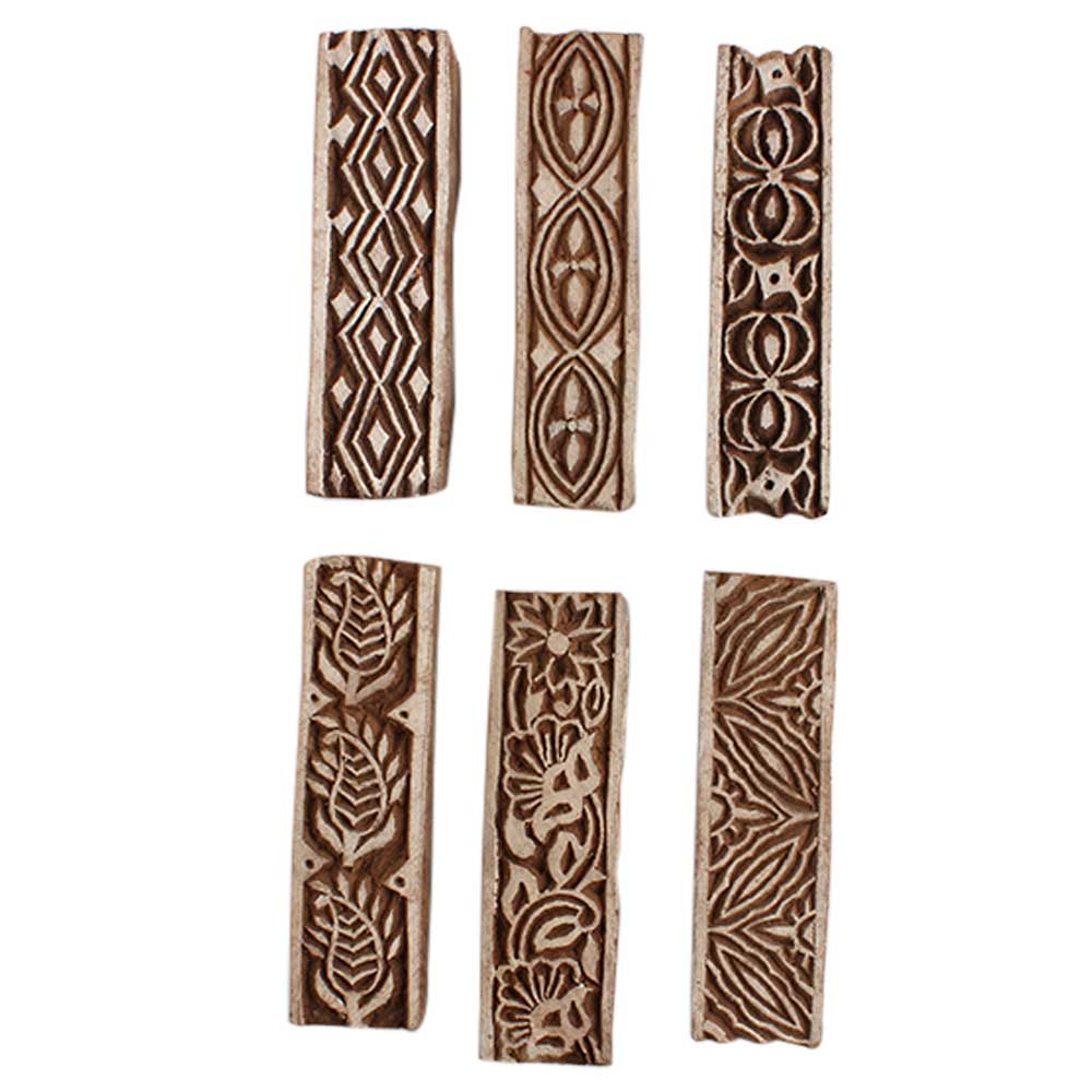 Set of 6 Piece New Mix Wooden Printing Block. Ideal for Using on Fabric, Paper, Canvas, etc. These Blocks can be use to Print with Oil Colors, Fabric Colors, Water Colors, Acrylic Colors and Vegetable Colors.
