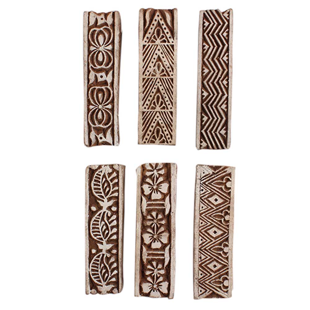 Set of 6 Piece New Mix Wooden Printing Block. Ideal for Using on Fabric, Paper, Canvas, etc. These Blocks can be use to Print with Oil Colors, Fabric Colors, Water Colors, Acrylic Colors and Vegetable Colors.