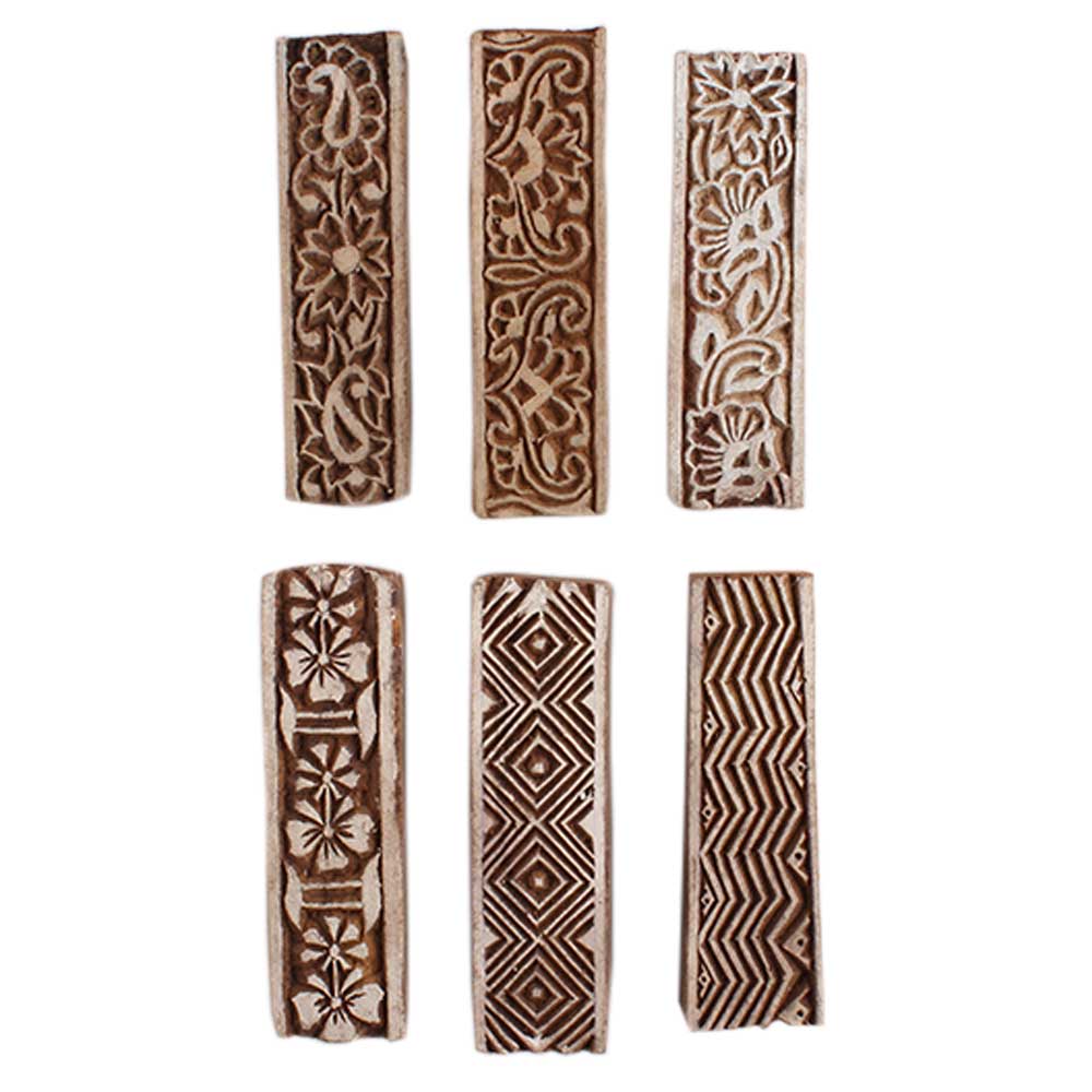Set of 6 Piece New Mix Wooden Printing Block. Ideal for Using on Fabric, Paper, Canvas, etc. These Blocks can be use to Print with Oil Colors, Fabric Colors, Water Colors, Acrylic Colors and Vegetable Colors.