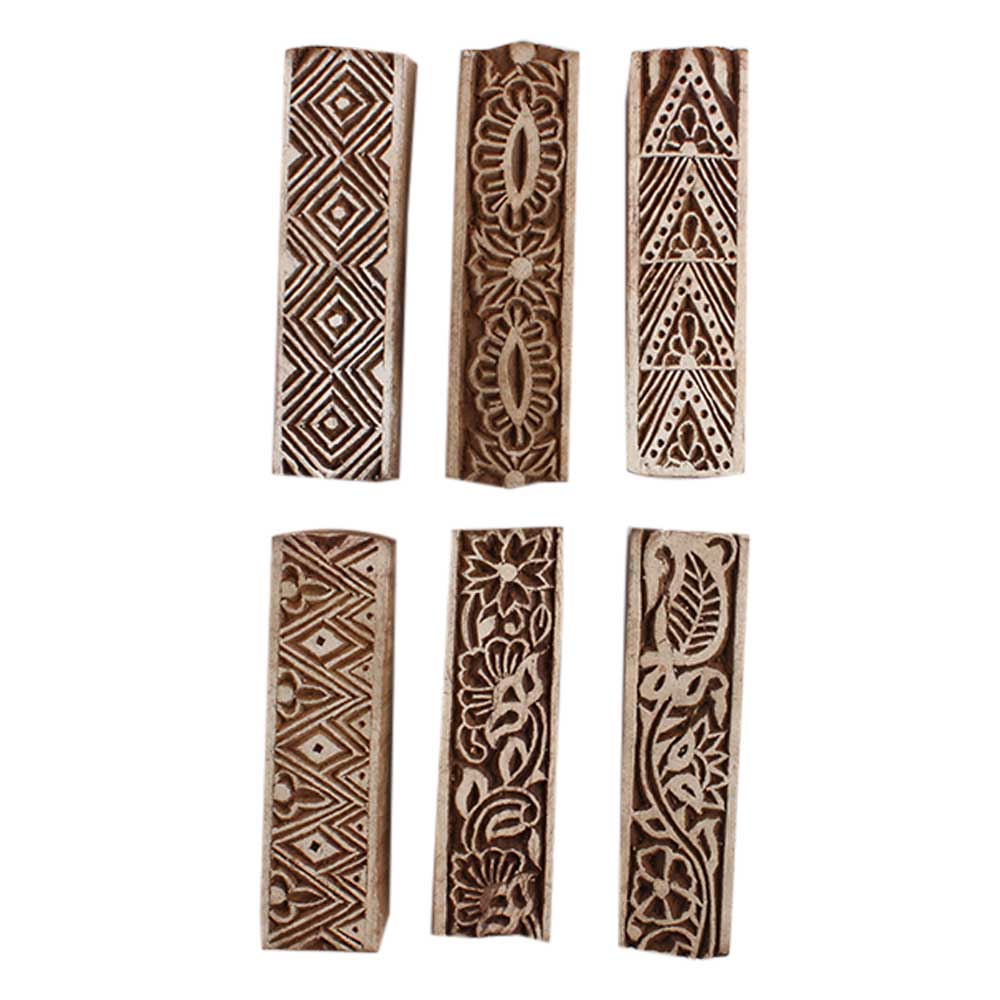 Set of 6 Piece New Mix Wooden Printing Block. Ideal for Using on Fabric, Paper, Canvas, etc. These Blocks can be use to Print with Oil Colors, Fabric Colors, Water Colors, Acrylic Colors and Vegetable Colors.