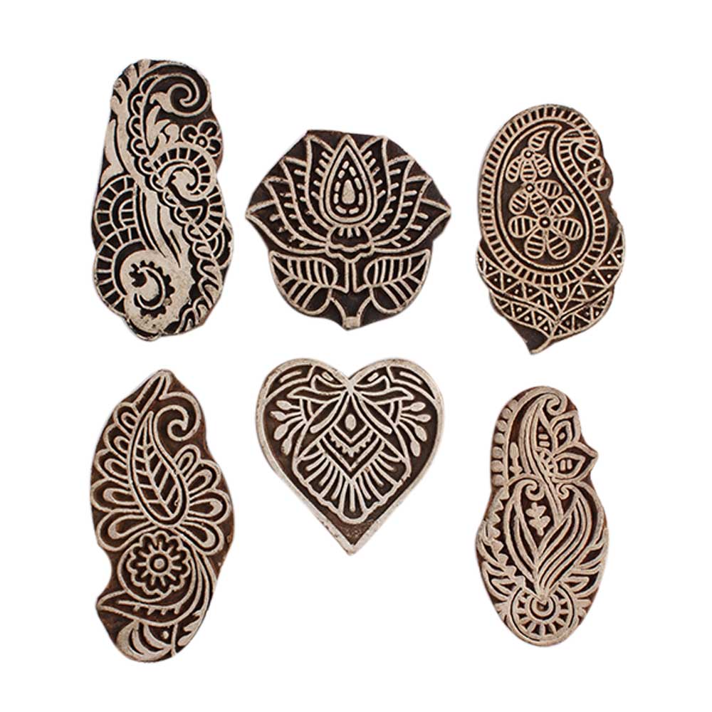 Set of 6 Piece New Mix Wooden Printing Block. Ideal for Using on Fabric, Paper, Canvas, etc. These Blocks can be use to Print with Oil Colors, Fabric Colors, Water Colors, Acrylic Colors and Vegetable Colors.