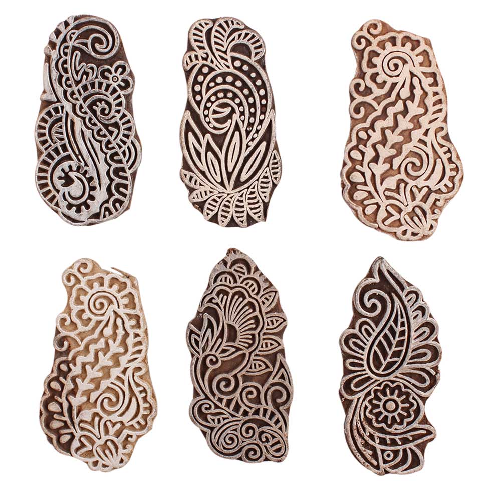 Set of 6 Piece New Mix Wooden Printing Block. Ideal for Using on Fabric, Paper, Canvas, etc. These Blocks can be use to Print with Oil Colors, Fabric Colors, Water Colors, Acrylic Colors and Vegetable Colors.