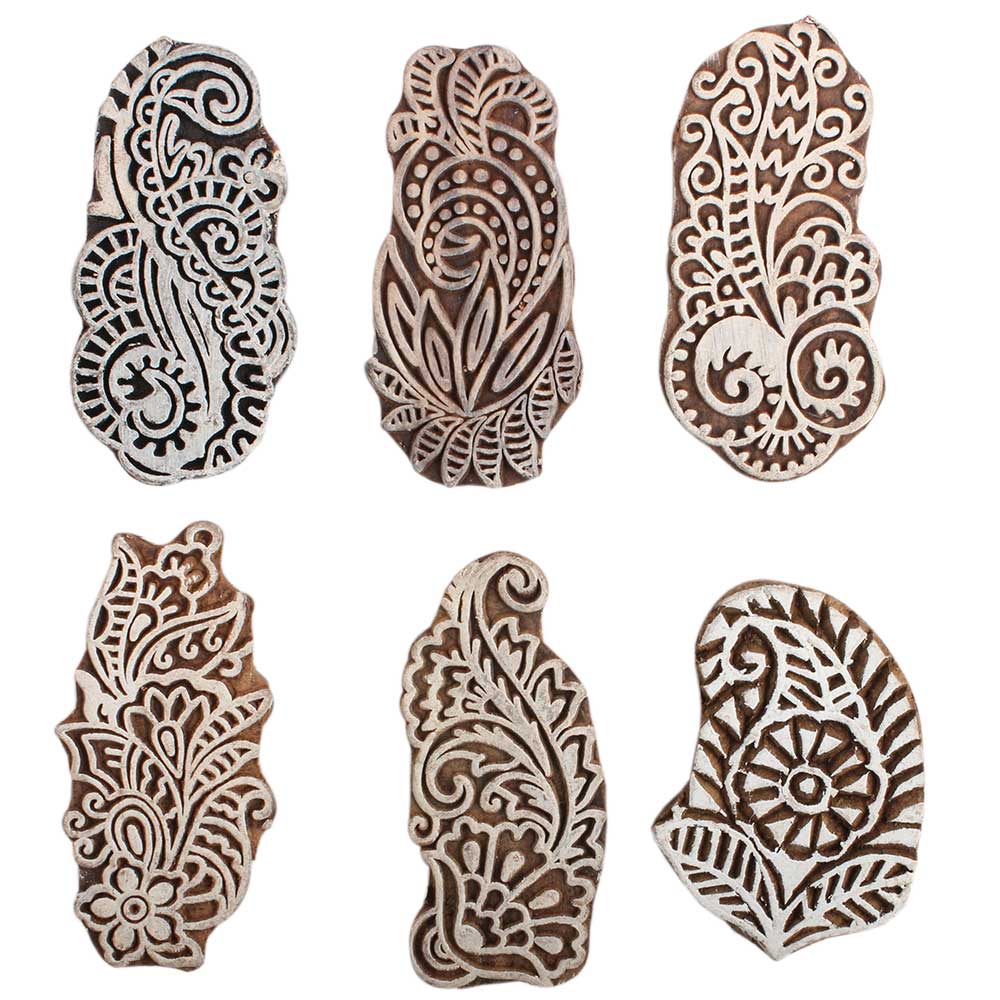 Set of 6 Piece New Mix Wooden Printing Block. Ideal for Using on Fabric, Paper, Canvas, etc. These Blocks can be use to Print with Oil Colors, Fabric Colors, Water Colors, Acrylic Colors and Vegetable Colors.