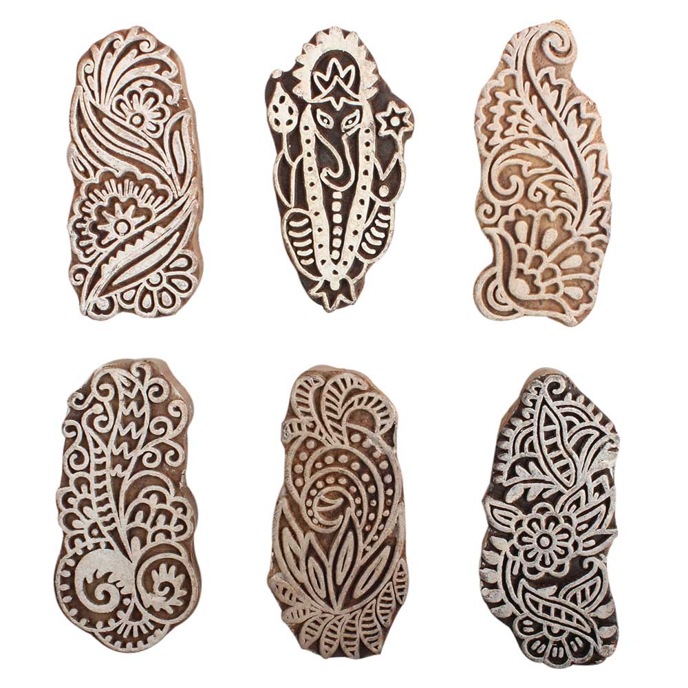 Set of 6 Piece New Mix Wooden Printing Block. Ideal for Using on Fabric, Paper, Canvas, etc. These Blocks can be use to Print with Oil Colors, Fabric Colors, Water Colors, Acrylic Colors and Vegetable Colors.
