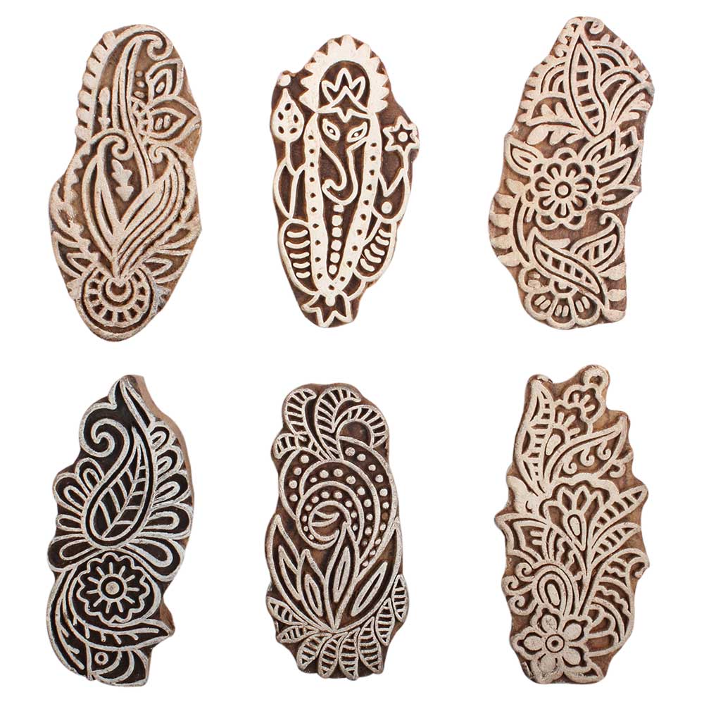 Set of 6 Piece New Mix Wooden Printing Block. Ideal for Using on Fabric, Paper, Canvas, etc. These Blocks can be use to Print with Oil Colors, Fabric Colors, Water Colors, Acrylic Colors and Vegetable Colors.