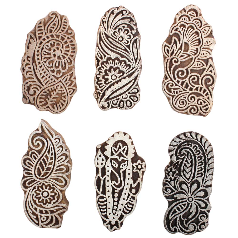 Set of 6 Piece New Mix Wooden Printing Block. Ideal for Using on Fabric, Paper, Canvas, etc. These Blocks can be use to Print with Oil Colors, Fabric Colors, Water Colors, Acrylic Colors and Vegetable Colors.