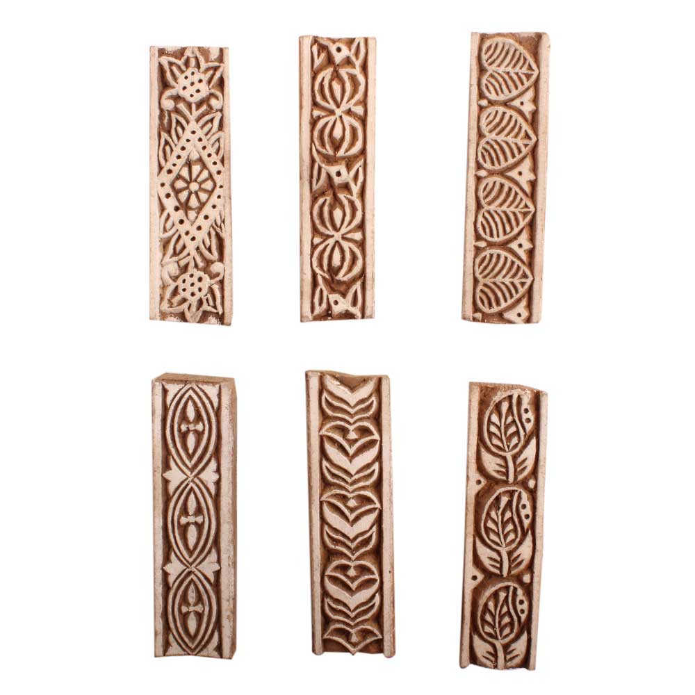 Set of 6 Piece New Mix Wooden Printing Block. Ideal for use on Fabric, Paper, Canvas, etc. These Blocks can be use to Print with Oil Colors, Fabric Colors, Water Colors, Acrylic Colors and Vegetable Colors.