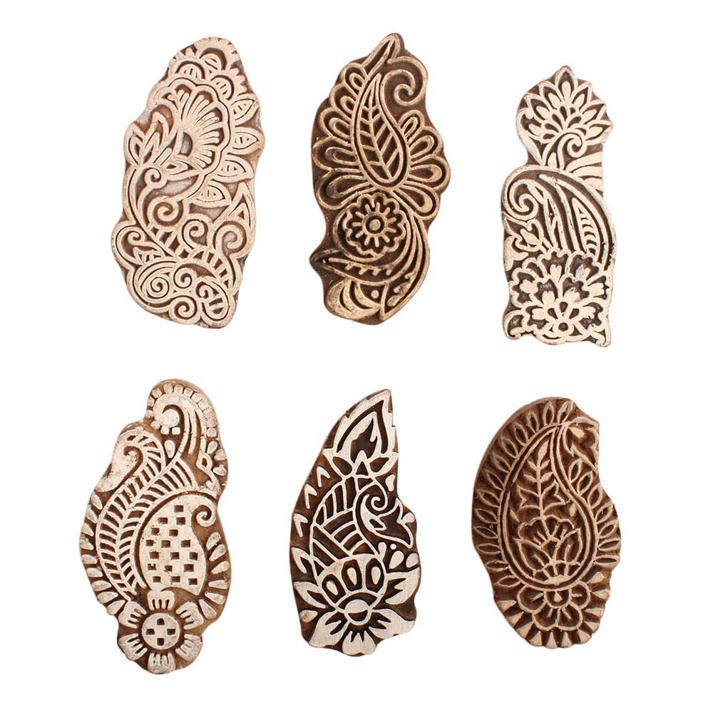 Set of 6 Piece New Mix Wooden Printing Block. Ideal for use on Fabric, Paper, Canvas, etc. These Blocks can be use to Print with Oil Colors, Fabric Colors, Water Colors, Acrylic Colors and Vegetable Colors.