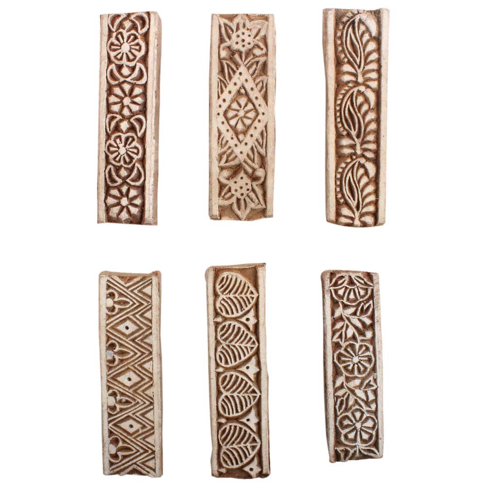 Set of 6 Piece New Mix Wooden Printing Block. Ideal for use on Fabric, Paper, Canvas, etc. These Blocks can be use to Print with Oil Colors, Fabric Colors, Water Colors, Acrylic Colors and Vegetable Colors.