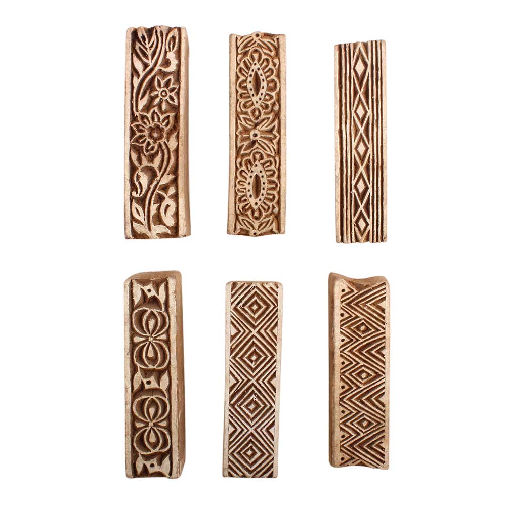 Set of 6 Piece New Mix Wooden Printing Block. Ideal for use on Fabric, Paper, Canvas, etc. These Blocks can be use to Print with Oil Colors, Fabric Colors, Water Colors, Acrylic Colors and Vegetable Colors.