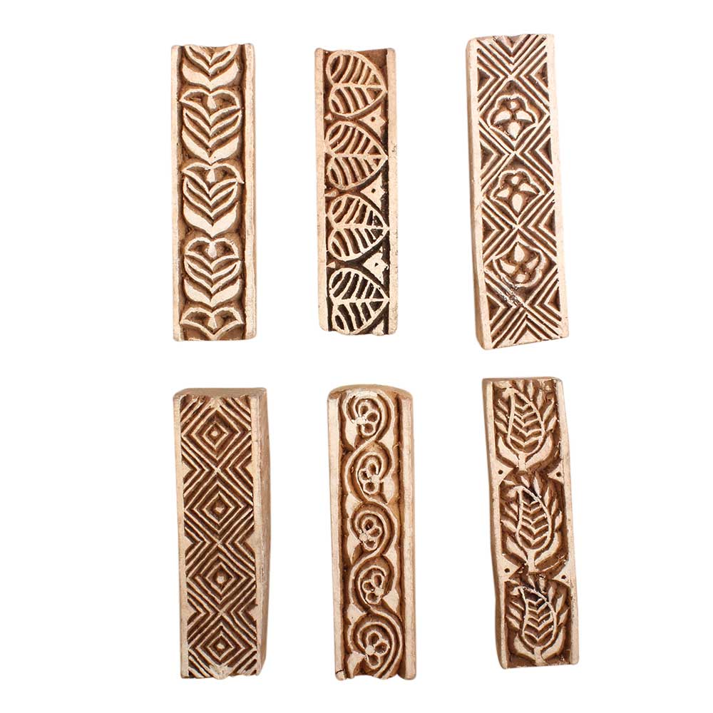 Set of 6 Piece New Mix Wooden Printing Block. Ideal for use on Fabric, Paper, Canvas, etc. These Blocks can be use to Print with Oil Colors, Fabric Colors, Water Colors, Acrylic Colors and Vegetable Colors.