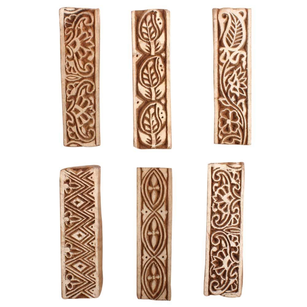 Set of 6 Piece New Mix Wooden Printing Block. Ideal for use on Fabric, Paper, Canvas, etc. These Blocks can be use to Print with Oil Colors, Fabric Colors, Water Colors, Acrylic Colors and Vegetable Colors.