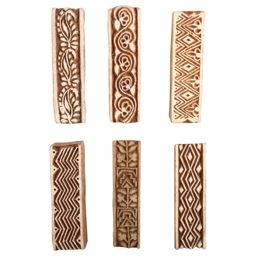 Set of 6 Piece New Mix Wooden Printing Block. Ideal for use on Fabric, Paper, Canvas, etc. These Blocks can be use to Print with Oil Colors, Fabric Colors, Water Colors, Acrylic Colors and Vegetable Colors.