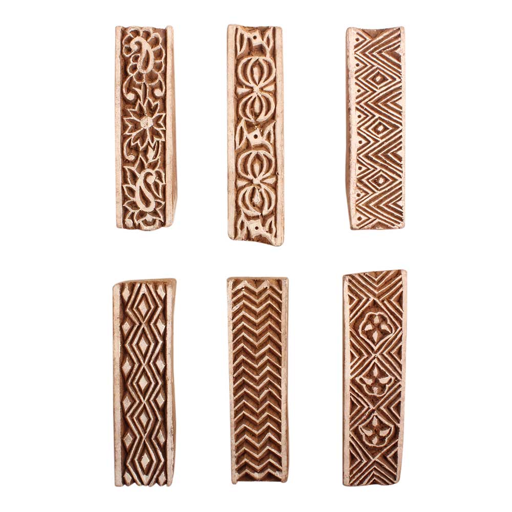 Set of 6 Piece New Mix Wooden Printing Block. Ideal for use on Fabric, Paper, Canvas, etc. These Blocks can be use to Print with Oil Colors, Fabric Colors, Water Colors, Acrylic Colors and Vegetable Colors.