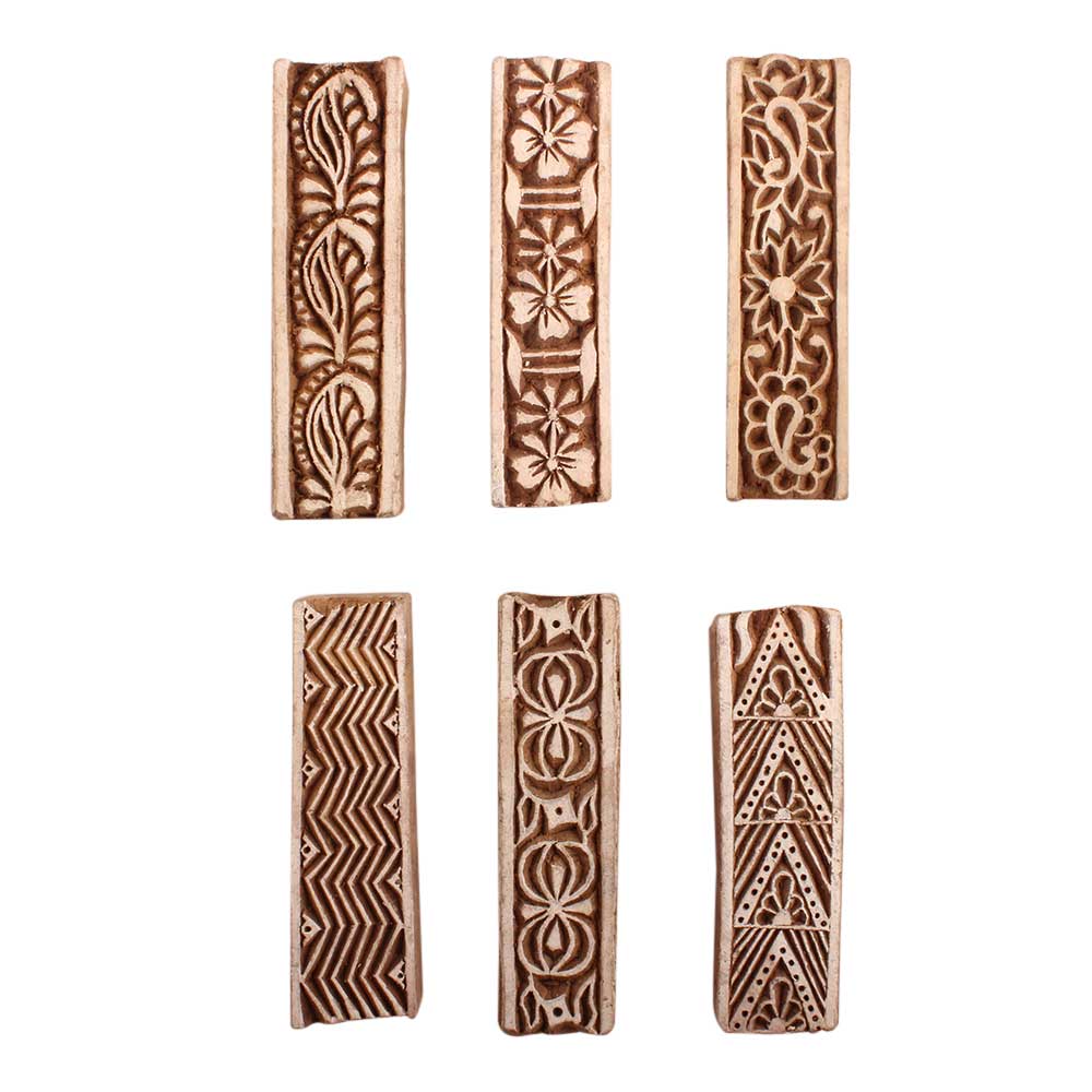 Set of 6 Piece New Mix Wooden Printing Block. Ideal for use on Fabric, Paper, Canvas, etc. These Blocks can be use to Print with Oil Colors, Fabric Colors, Water Colors, Acrylic Colors and Vegetable Colors.