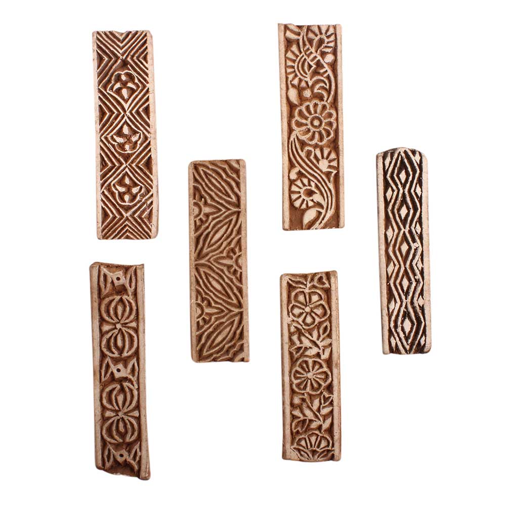 Set of 6 Piece New Mix Wooden Printing Block. Ideal for use on Fabric, Paper, Canvas, etc. These Blocks can be use to Print with Oil Colors, Fabric Colors, Water Colors, Acrylic Colors and Vegetable Colors.