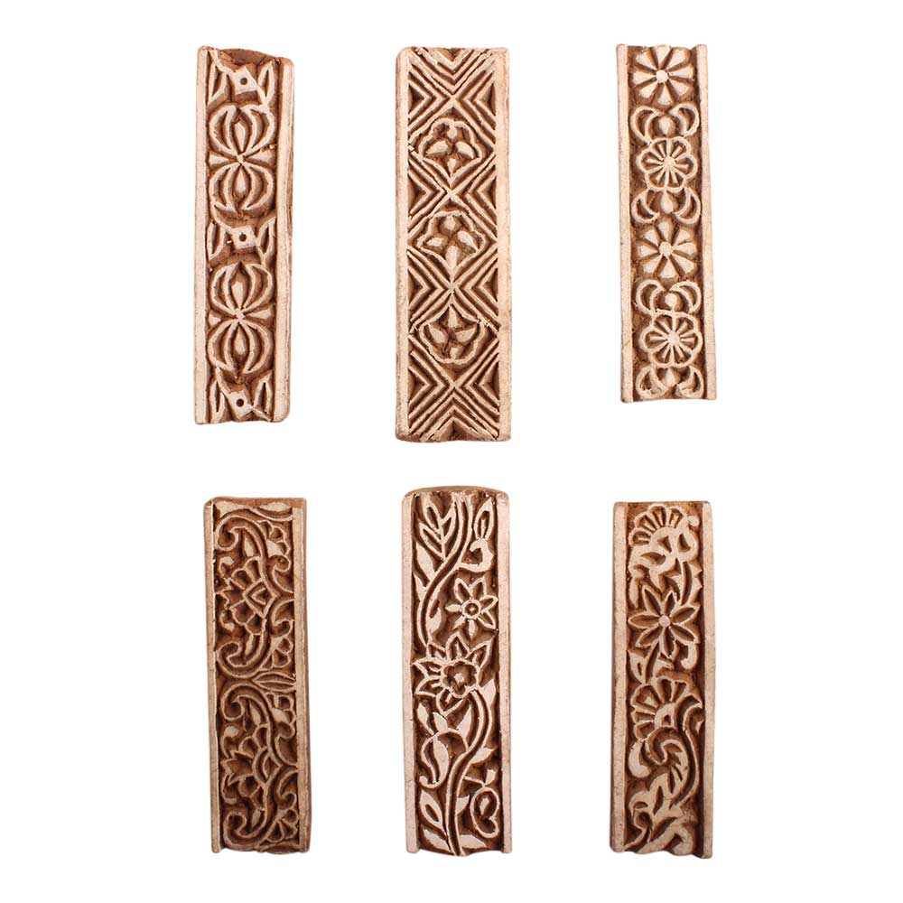 Set of 6 Piece New Mix Wooden Printing Block. Ideal for use on Fabric, Paper, Canvas, etc. These Blocks can be use to Print with Oil Colors, Fabric Colors, Water Colors, Acrylic Colors and Vegetable Colors.