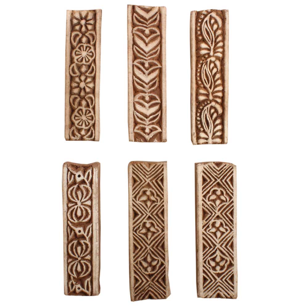 Set of 6 Piece New Mix Wooden Printing Block. Ideal for use on Fabric, Paper, Canvas, etc. These Blocks can be use to Print with Oil Colors, Fabric Colors, Water Colors, Acrylic Colors and Vegetable Colors.
