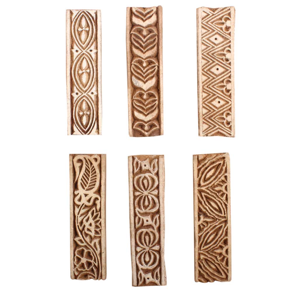 Set of 6 Piece New Mix Wooden Printing Block. Ideal for use on Fabric, Paper, Canvas, etc. These Blocks can be use to Print with Oil Colors, Fabric Colors, Water Colors, Acrylic Colors and Vegetable Colors.