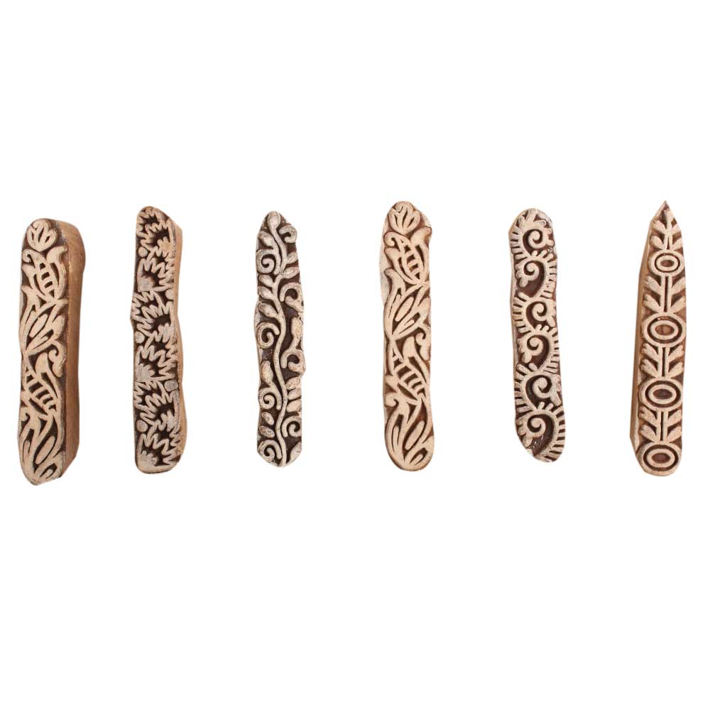 Set of 6 Piece New Mix Wooden Printing Block. Ideal for use on Fabric, Paper, Canvas, etc. These Blocks can be use to Print with Oil Colors, Fabric Colors, Water Colors, Acrylic Colors and Vegetable Colors.