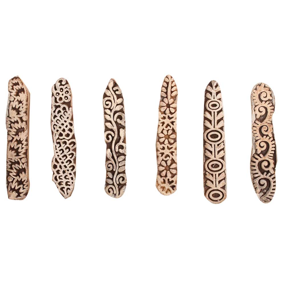 Set of 6 Piece New Mix Wooden Printing Block. Ideal for use on Fabric, Paper, Canvas, etc. These Blocks can be use to Print with Oil Colors, Fabric Colors, Water Colors, Acrylic Colors and Vegetable Colors.