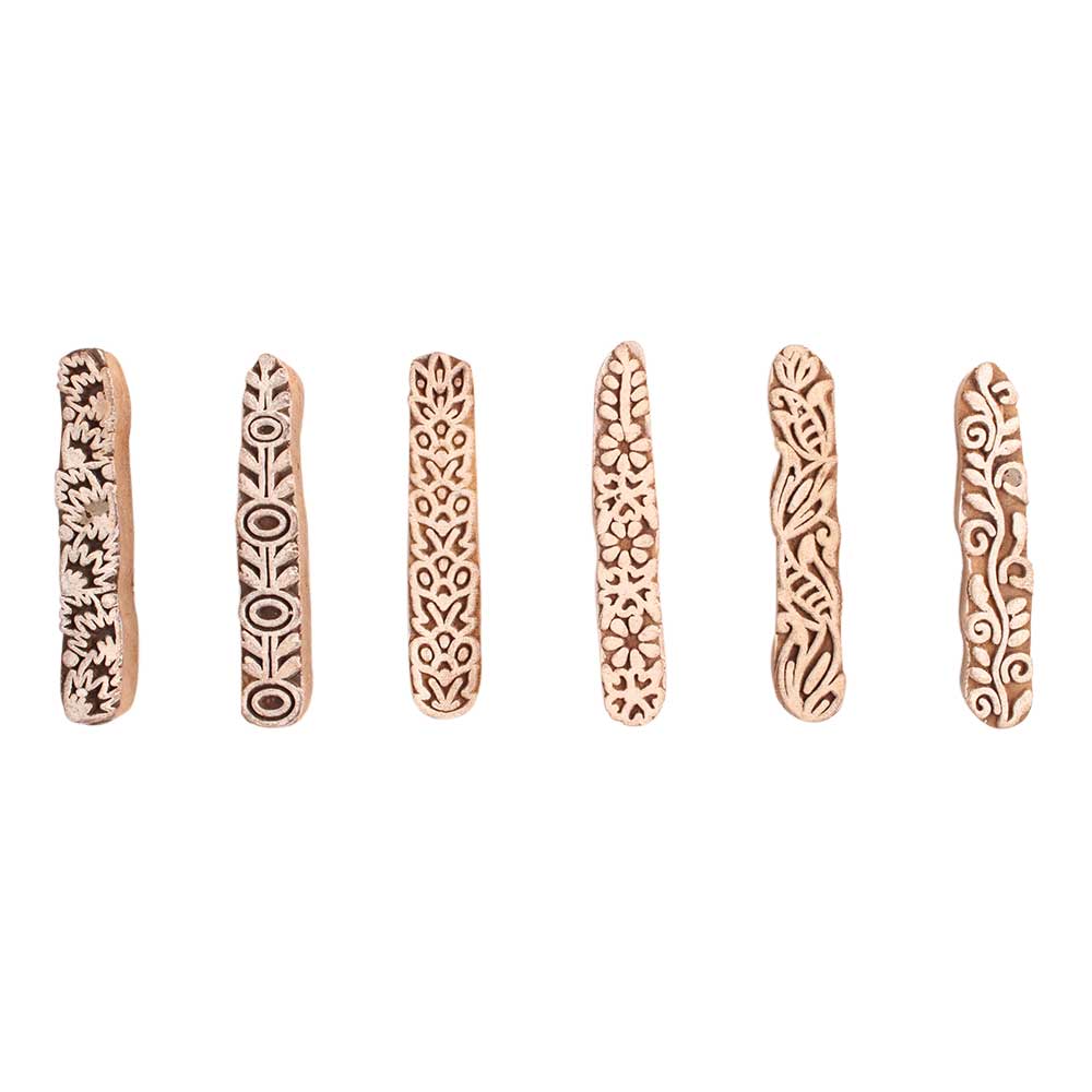 Set of 6 Piece New Mix Wooden Printing Block. Ideal for use on Fabric, Paper, Canvas, etc. These Blocks can be use to Print with Oil Colors, Fabric Colors, Water Colors, Acrylic Colors and Vegetable Colors.
