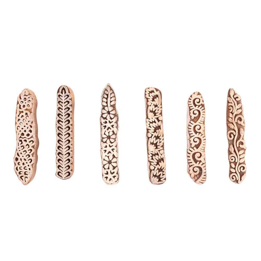 Set of 6 Piece New Mix Wooden Printing Block. Ideal for use on Fabric, Paper, Canvas, etc. These Blocks can be use to Print with Oil Colors, Fabric Colors, Water Colors, Acrylic Colors and Vegetable Colors.
