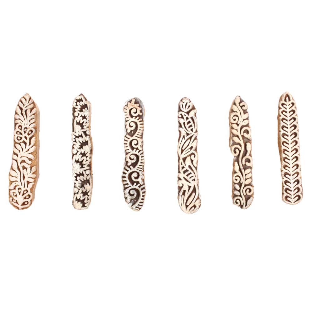 Set of 6 Piece New Mix Wooden Printing Block. Ideal for use on Fabric, Paper, Canvas, etc. These Blocks can be use to Print with Oil Colors, Fabric Colors, Water Colors, Acrylic Colors and Vegetable Colors.