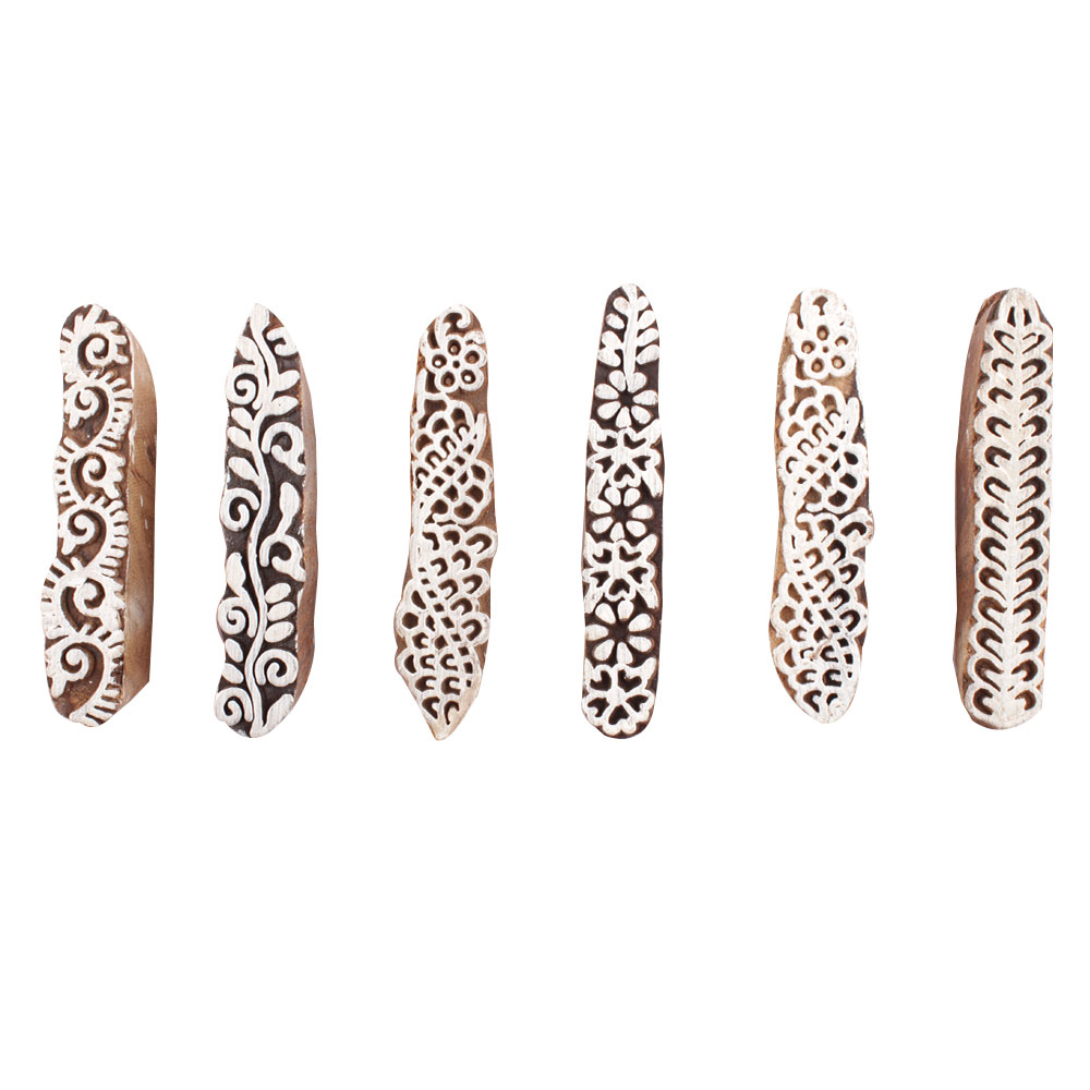 Set of 6 Piece New Mix Wooden Printing Block. Ideal for use on Fabric, Paper, Canvas, etc. These Blocks can be use to Print with Oil Colors, Fabric Colors, Water Colors, Acrylic Colors and Vegetable Colors.