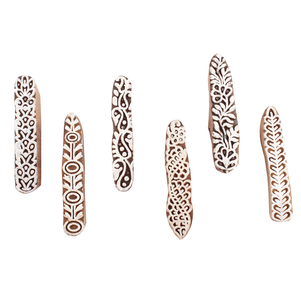Set of 6 Piece New Mix Wooden Printing Block. Ideal for use on Fabric, Paper, Canvas, etc. These Blocks can be use to Print with Oil Colors, Fabric Colors, Water Colors, Acrylic Colors and Vegetable Colors.
