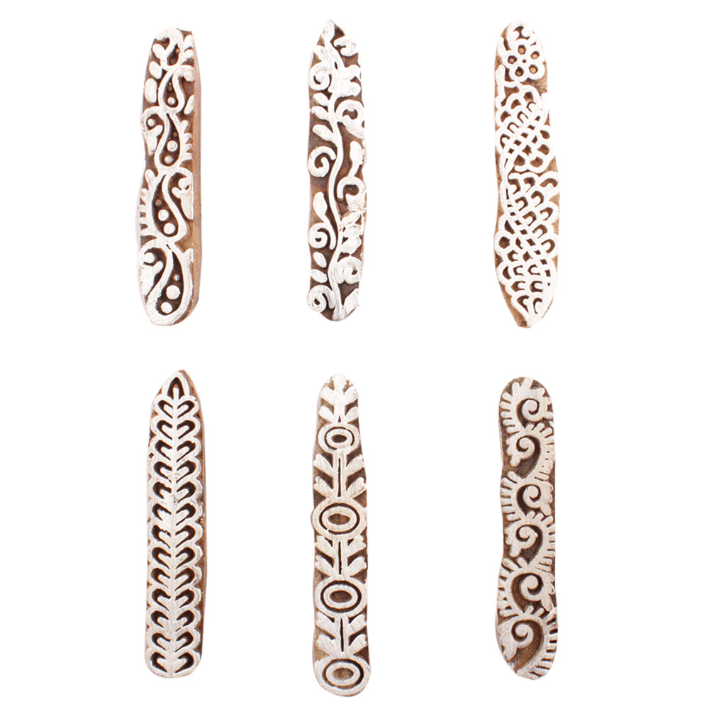 Set of 6 Piece New Mix Wooden Printing Block. Ideal for use on Fabric, Paper, Canvas, etc. These Blocks can be use to Print with Oil Colors, Fabric Colors, Water Colors, Acrylic Colors and Vegetable Colors.