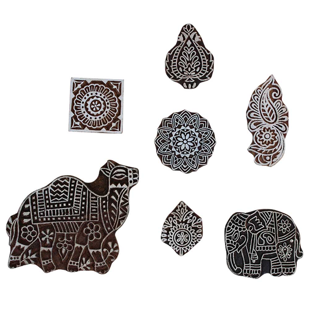 Set of 7 Piece New Mix Wooden Printing Block. Ideal for Using on Fabric, Paper, Canvas, etc. These Blocks can be use to Print with Oil Colors, Fabric Colors, Water Colors, Acrylic Colors and Vegetable Colors.