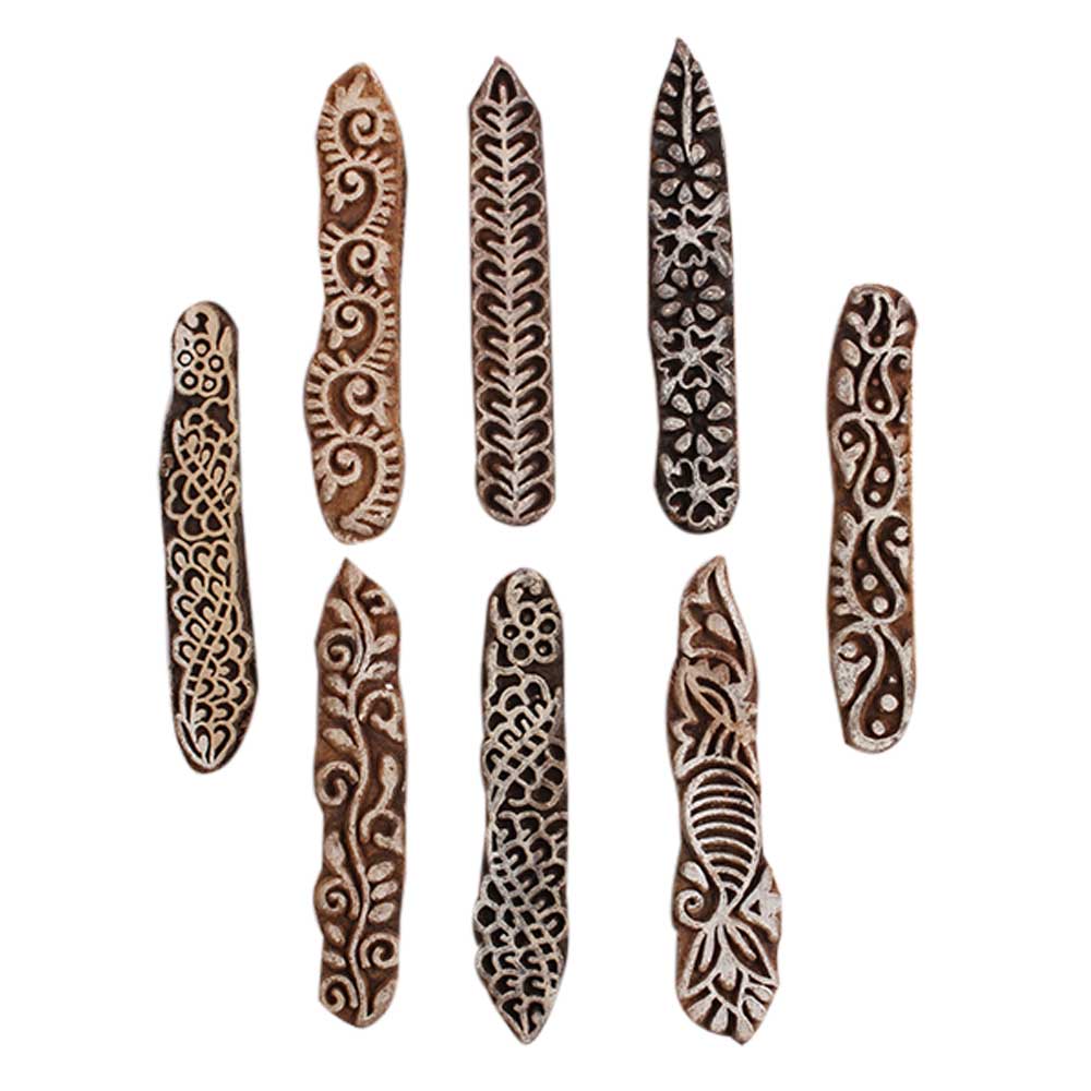 Set of 8 Piece New Mix Wooden Printing Block. Ideal for Using on Fabric, Paper, Canvas, etc. These Blocks can be use to Print with Oil Colors, Fabric Colors, Water Colors, Acrylic Colors and Vegetable Colors.