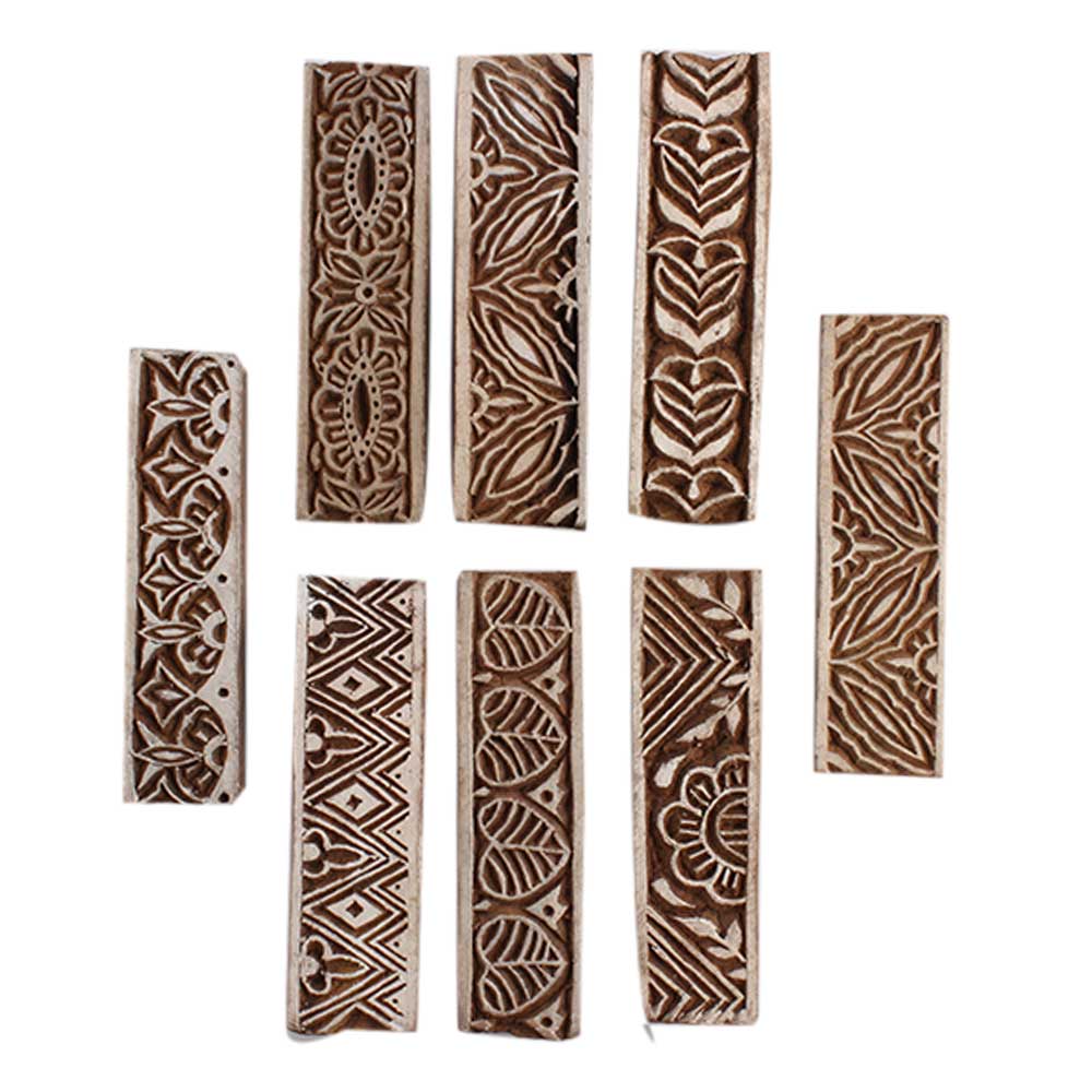 Set of 8 Piece New Mix Wooden Printing Block. Ideal for Using on Fabric, Paper, Canvas, etc. These Blocks can be use to Print with Oil Colors, Fabric Colors, Water Colors, Acrylic Colors and Vegetable Colors.